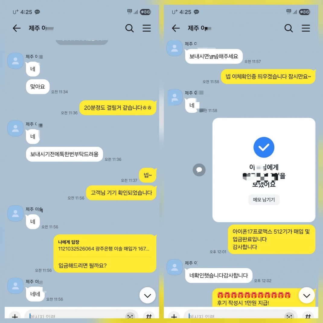 10.1 이* 고객님 아이폰17프로맥스1TB 매입완료 작성자이* 등록일 25-10-01 조회58회 이름이* 본문 제주도 사셔서 비대면 진행이 오래걸릴까 걱정하셨지만 비대면 진행으로 바로 처리 받으셨습니다~ 폰테크 후기 폰테크 아이폰 17 프로맥스 이용후기 수정 삭제 목록 글쓰기