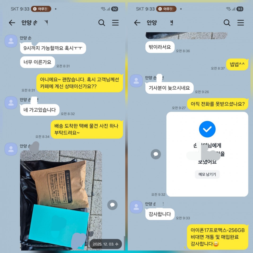12.03 손*연 고객님 아이폰17프로맥스 256GB 매입완료 작성자손*연 등록일 25-12-09 조회47회 이름손*연 본문 비대면으로 진행해드린고객님이십니다. 비대면 당일진행.출장매입 모두 가능하십니다. 언제든지 문의주시면 신속한 상담도와드리겠습니다 12.03 박*학 고객님 아이폰17프로맥스256GB 매입완료 폰테크 아이폰 17프로 맥스 후기 수정 삭제 목록 글쓰기