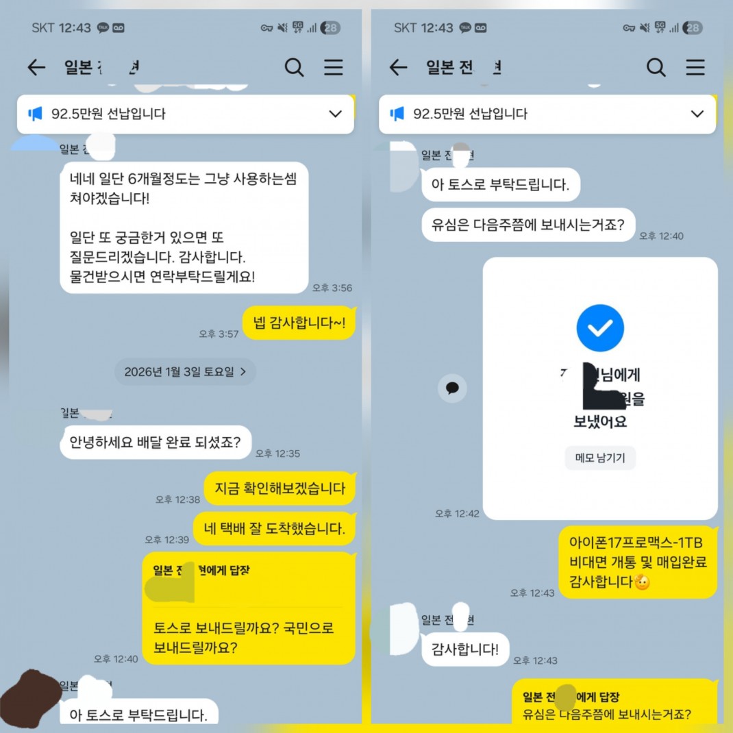 01.03 전*현 고객님 아이폰17프로맥스1TB 매입완료 작성자전*현 등록일 26-01-11 조회6회 이름전*현 본문 선납 진행해드린고객님이십니다. 비대면 당일진행.출장매입 모두 가능하십니다. 언제든지 문의주시면 신속한 상담도와드리겠습니다 01.06 최*현 고객님 아이폰17프로맥스256GB 매입완료 폰테크 아이폰17프로맥스 이용후기 수정 삭제 목록 글쓰기