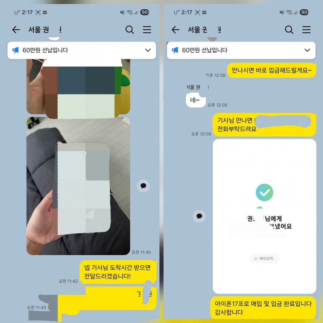 02.13 권*원 고객님 아이폰17프로 256GB 매입완료 작성자권*원 등록일 26-02-27 조회5회 이름권*원 본문 선대납 진행해드린 고객님이십니다. 비대면 당일진행.출장매입 모두 가능하십니다. 언제든지 문의주시면 신속한 상담도와드리겠습니다 02.13 채*선 고객님 아이폰17프로 256GB 매입완료 02.13 차*서 고객님 아이폰17프로맥스 512GB 매입완료 수정 삭제 목록 글쓰기