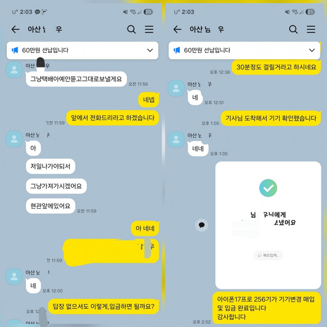 02.21 남*우 고객님 아이폰17프로 256GB 매입완료 작성자남*우 등록일 26-02-27 조회3회 이름남*우 본문 선대납 진행해드린 고객님이십니다. 비대면 당일진행.출장매입 모두 가능하십니다. 언제든지 문의주시면 신속한 상담도와드리겠습니다 02.22 한* 고객님 아이폰17프로맥스 256GB 매입완료 02.21 백*희 고객님 아이폰17프로맥스 512GB 매입완료 수정 삭제 목록 글쓰기
