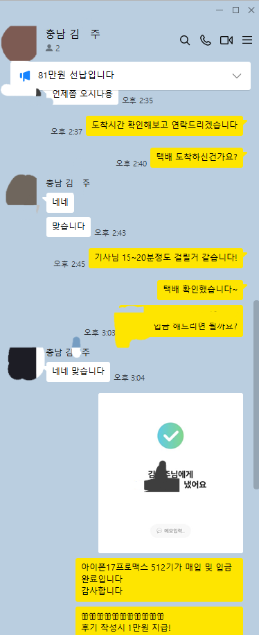 3.19 김*주 고객님 아이폰17프로맥스 512GB 매입완료 작성자김*주 등록일 26-03-20 조회15회 이름김*주 본문 선대납 진행해드린 고객님이십니다. 비대면 당일진행.출장매입 모두 가능하십니다. 언제든지 문의주시면 신속한 상담도와드리겠습니다 3.19 김*우 고객님 아이폰17프로맥스 512GB 매입완료 3.19 박*윤 고객님 아이폰17프로맥스 256GB 매입완료 수정 삭제 목록 글쓰기