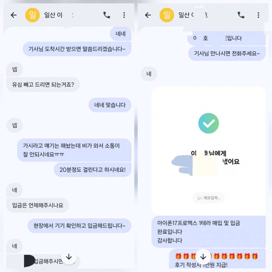 4.25 이*호 고객님 아이폰17프로맥스1TB 매입완료 작성자이*호 등록일 26-04-29 조회4회 이름이*호 본문 비대면으로 진행해드린 고객님이십니다. 비대면 당일진행.출장매입 모두 가능하십니다. 언제든지 문의주시면 신속한 상담도와드리겠습니다 4.25 황*갑 고객님 아이폰17프로맥스256GB 매입완료 4.25 박*진 고객님 아이폰17프로맥스256GB 매입완료 수정 삭제 목록 글쓰기