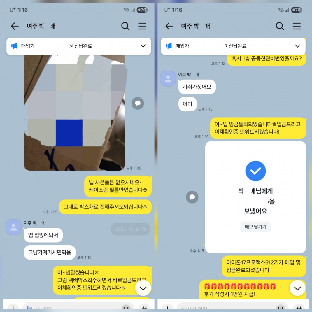 10. 12 박*배 고객님 아이폰17프로맥스 512GB 매입완료