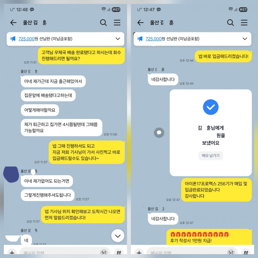 10.14 김*훈 고객님 아이폰17프로맥스256GB 매입완료 작성자김*훈 등록일 25-10-15 조회12회 이름김*훈 본문 비대면으로 매입완료해드린고객님입니다. 대면&비대면, 출장매입 모두 가능하므로 언제든지 문의주시면 신속한 상담도와드리겠습니다! 10.14 유*예 고객님 아이폰17프로맥스1TB 매입완료 10. 12 김*민 고객님 아이폰 17 프로맥스 256GB 매입완료 수정 삭제 목록 글쓰기