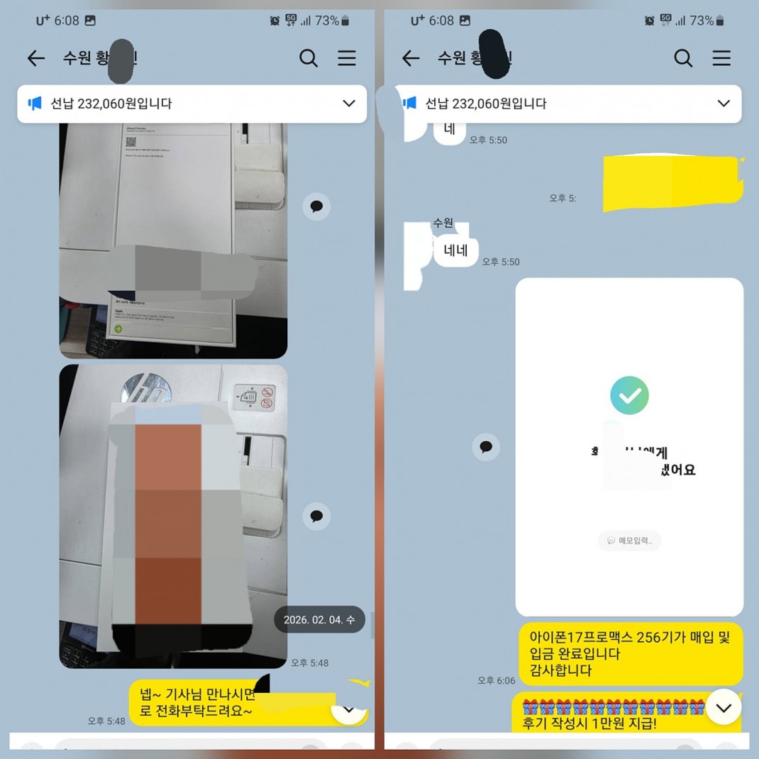 02.04 황*빈 고객님 아이폰17프로맥스 256GB 매입완료 작성자황*빈 등록일 26-02-05 조회1회 이름황*빈 본문 선대납 진행해드린 고객님이십니다. 비대면 당일진행.출장매입 모두 가능하십니다. 언제든지 문의주시면 신속한 상담도와드리겠습니다 02.04 정*수 고객님 아이폰17프로맥스 256GB 매입완료 수정 삭제 목록 글쓰기
