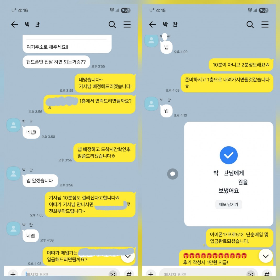 11.01 박*란 고객님 아이폰17프로512GB 매입완료 작성자박*란 등록일 25-11-03 조회33회 이름박*란 본문 아이폰 단순매입 진행해드린 고객님이십니다. 비대면.당일.단순매입 모두 가능합니다~ 언제든지 문의주시면 신속한 상담도와드리겠습니다! 11.03 김*나 고객님 아이폰17프로맥스512GB 매입완료 10.30 김*곤 고객님 아이폰 17프로맥스 1TB 매입완료 수정 삭제 목록 글쓰기