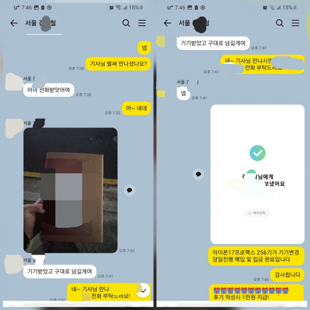 01.09 김*철 고객님 아이폰17프로맥스 256GB 매입완료 작성자김*철 등록일 26-01-11 조회123회 이름김*철 본문 비대면으로 진행해드린고객님이십니다. 비대면 당일진행.출장매입 모두 가능하십니다. 언제든지 문의주시면 신속한 상담도와드리겠습니다 01.12 김*형 고객님 아이폰17프로맥스 512GB 매입완료 01.09 나*현 고객님 신규개통 매입완료 수정 삭제 목록 글쓰기