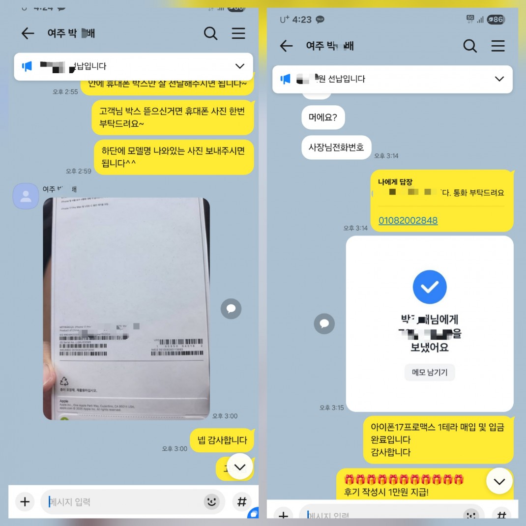 미납요금때문에 걱정하셨지만 상담끝에 미납금 선납 없이 비대면으로 편하게 진행하셨습니다비대면.당일매입.출장진행 모두 가능합니다~