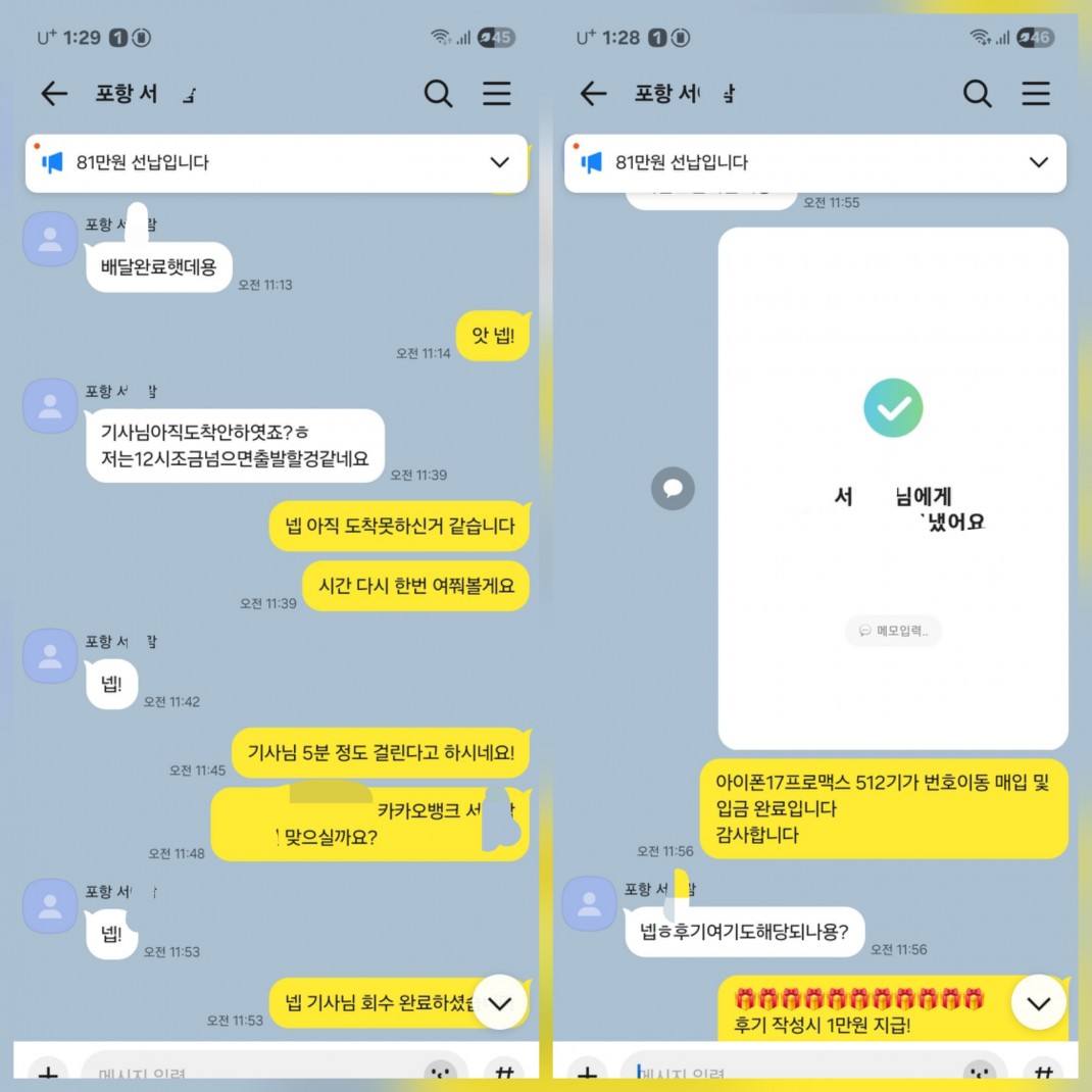 12.30 서*람 고객님 아이폰17프로맥스512GB 매입완료 작성자서*람 등록일 26-01-03 조회67회 이름서*람 본문 선납으로 진행해드린고객님이십니다. 비대면 당일진행.출장매입 모두 가능하십니다. 언제든지 문의주시면 신속한 상담도와드리겠습니다 12.31 강*찬 고객님 아이폰17프로맥스1TB 매입완료 12.27 지*환고객님 신규개통 매입완료 수정 삭제 목록 글쓰기