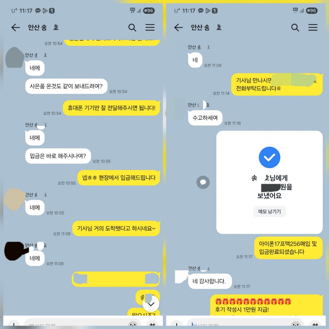 9.25 송*호 고객님 아이폰17프로맥스256GB 매입완료 작성자송*호 등록일 25-09-25 조회84회 이름송*호 본문 비대면으로 개통진행 및 매입완료된 고객님이십니다. 당일개통,비대면개통,출장개통 모두 가능합니다! 언제든지 문의주시면 고객님께 알맞는 방식으로 상담도와드리겠습니다. 9.25 양*문 고객님 아이폰 17프로 512GB 매입완료 9.23 윤*철 고객님 아이폰17프로맥스512GB 매입완료 수정 삭제 목록 글쓰기