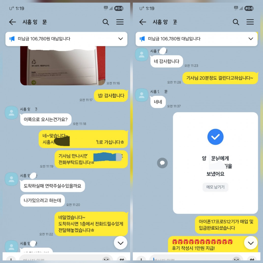 9.25 양*문 고객님 아이폰 17프로 512GB 매입완료 작성자양*문 등록일 25-09-25 조회81회 이름양*문 본문 미납금 대납 및 비대면진행으로 매입진행해드린 고객님입니다. 미납금이 있는 경우에도 진행가능합니다~ 언제든지 문의주시면 상담도와드리겠습니다. 9.26 김*언 고객님 갤럭시 S25울트라 256GB 매입완료 9.25 송*호 고객님 아이폰17프로맥스256GB 매입완료 수정 삭제 목록 글쓰기
