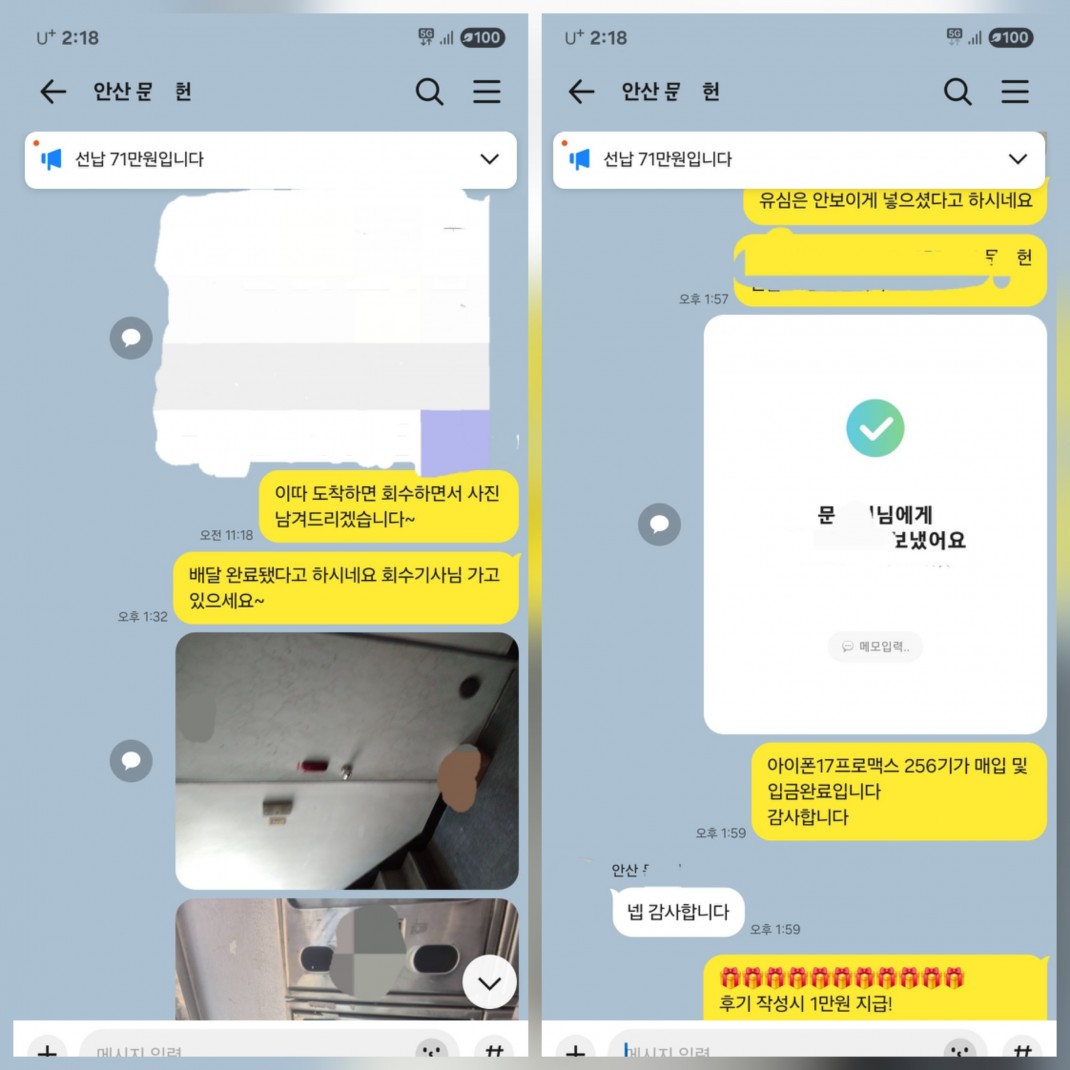 11.19 문*헌 고객님 아이폰17프로맥스256GB 매입완료 작성자문*헌 등록일 25-11-19 조회68회 이름문*헌 본문 비대면 진행 및 선납해드린 고객님이십니다. 비대면 당일진행.출장매입 모두 가능하십니다. 언제든지 문의주시면 신속한 상담도와드리겠습니다 11.19 문*혁 고객님 아이폰17프로맥스 1TB&프로256GB 매입완료 11.18 유*근 고객님 아이폰17프로맥스256GB 매입완료 수정 삭제 목록 글쓰기