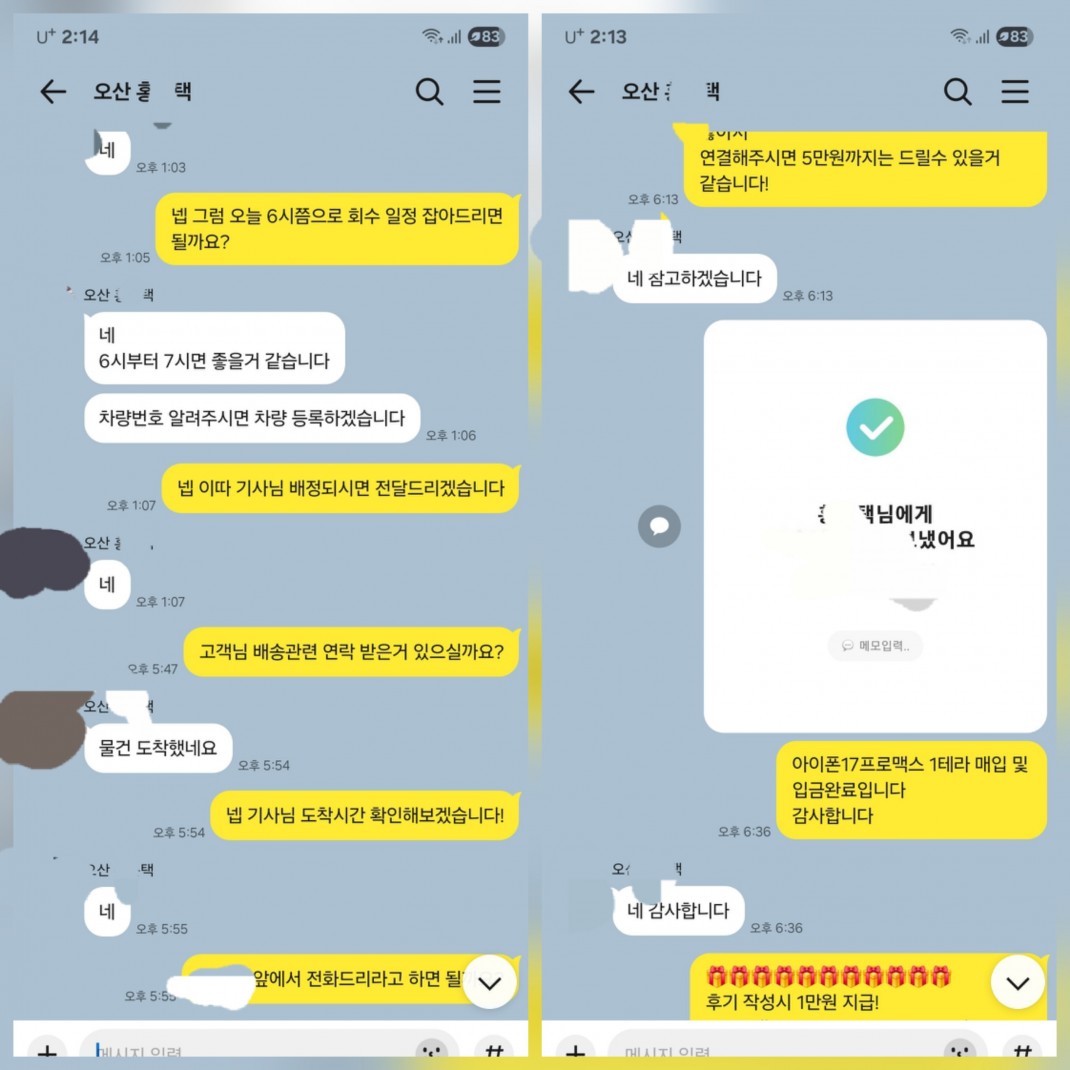 11.13 홍*택 고객님 아이폰17프로맥스1TB 매입완료 작성자홍*택 등록일 25-11-15 조회58회 이름홍*택 본문 비대면으로 진행해드린고객님이십니다. 비대면 당일진행.출장매입 모두 가능하십니다. 언제든지 문의주시면 신속한 상담도와드리겠습니다 11.13 정*환 고객님 아이폰17프로256GB매입완료 11.13 김*영 고객님 아이폰17프로256GB 매입완료 수정 삭제 목록 글쓰기