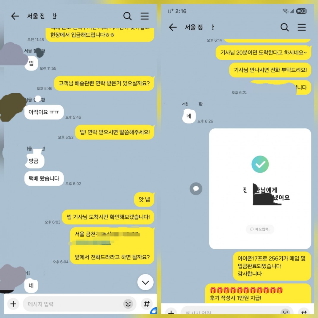 11.13 정*환 고객님 아이폰17프로256GB매입완료 작성자정*환 등록일 25-11-15 조회65회 이름정*환 본문 비대면으로 진행해드린고객님이십니다. 비대면 당일진행.출장매입 모두 가능하십니다. 언제든지 문의주시면 신속한 상담도와드리겠습니다 11.13 남*우 고객님 아이폰17프로맥스256GB 매입완료 11.13 홍*택 고객님 아이폰17프로맥스1TB 매입완료 수정 삭제 목록 글쓰기