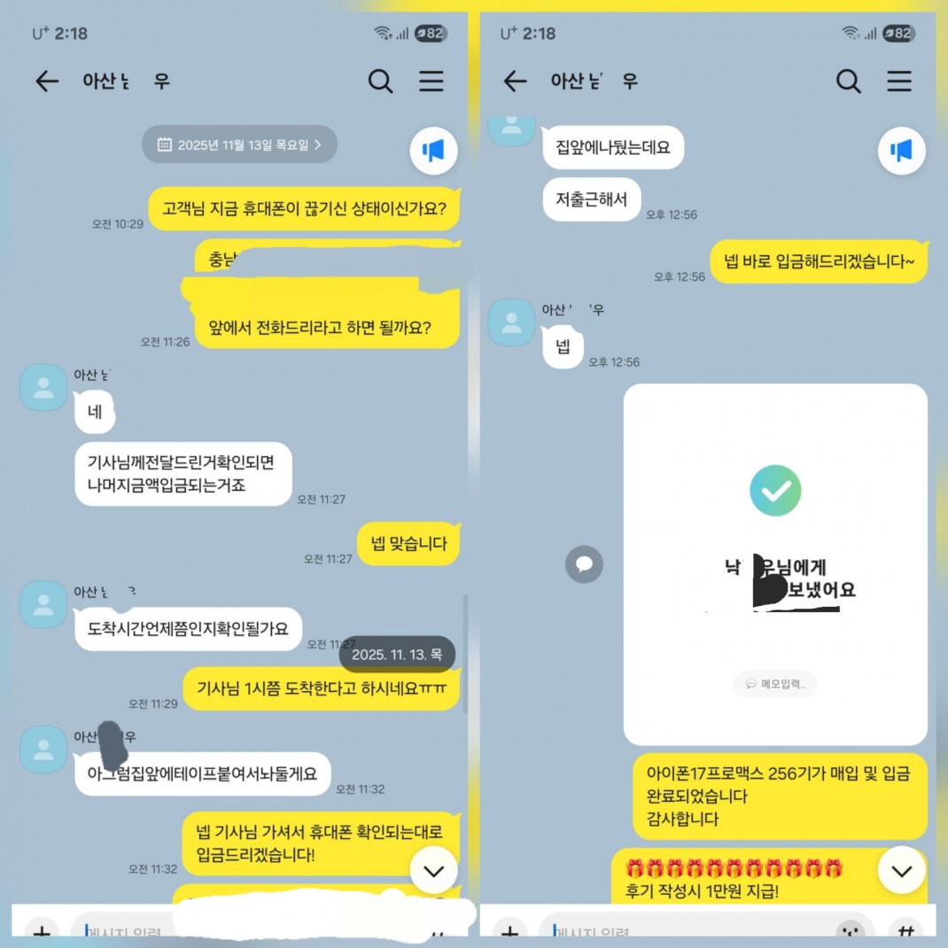 11.13 남*우 고객님 아이폰17프로맥스256GB 매입완료 작성자남*우 등록일 25-11-15 조회68회 이름남*우 본문 비대면으로 진행해드린고객님이십니다. 비대면 당일진행.출장매입 모두 가능하십니다. 언제든지 문의주시면 신속한 상담도와드리겠습니다 11.14 원*화 고객님 아이폰17프로맥스1TB매입완료 11.13 정*환 고객님 아이폰17프로256GB매입완료 수정 삭제 목록 글쓰기