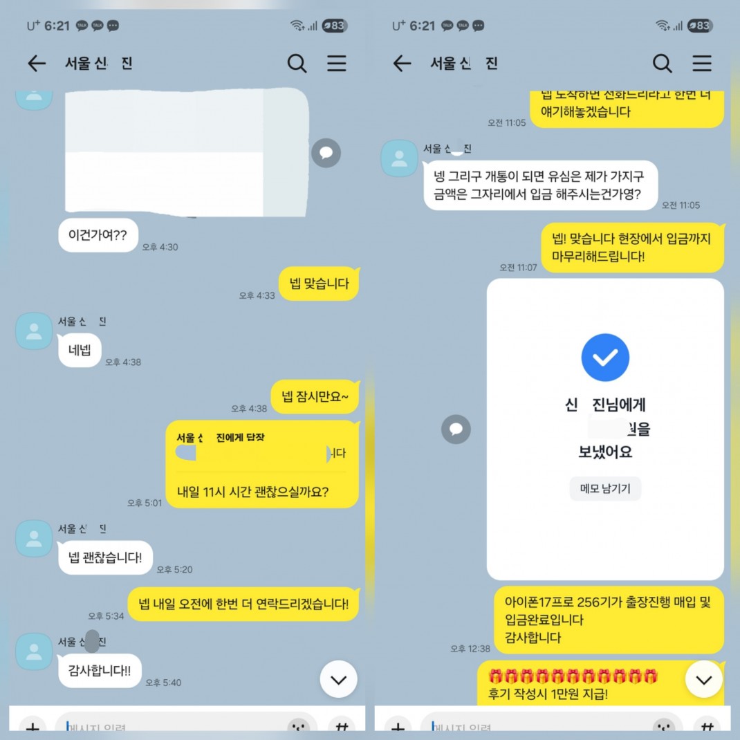 11.11 신*진 고객님 아이폰17프로256GB 매입완료 작성자신*진 등록일 25-11-12 조회52회 이름신*진 본문 출장진행으로 당일매입완로되신 고객님이십니다. 비대면 당일진행.출장매입 모두 가능하십니다. 언제든지 문의주시면 신속한 상담도와드리겠습니다 11.11 황*정 고객님 아이폰17프로256GB 매입완료 폰테크 아이폰17 프로 이용후기 수정 삭제 목록 글쓰기