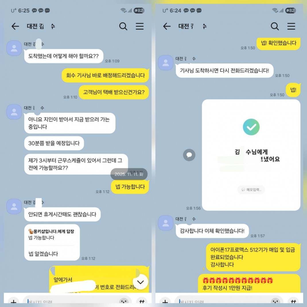 11.11 김*수 고객님 아이폰17프로맥스512GB매입완료 작성자김*수 등록일 25-11-12 조회55회 이름김*수 본문 비대면으로 진행해드린 고객님이십니다. 비대면 당일진행.출장매입 모두 가능하십니다. 언제든지 문의주시면 신속한 상담도와드리겠습니다 11.11 정*우 고객님 아이폰17프로맥스1TB 매입완료 11.11 황*정 고객님 아이폰17프로256GB 매입완료 수정 삭제 목록 글쓰기