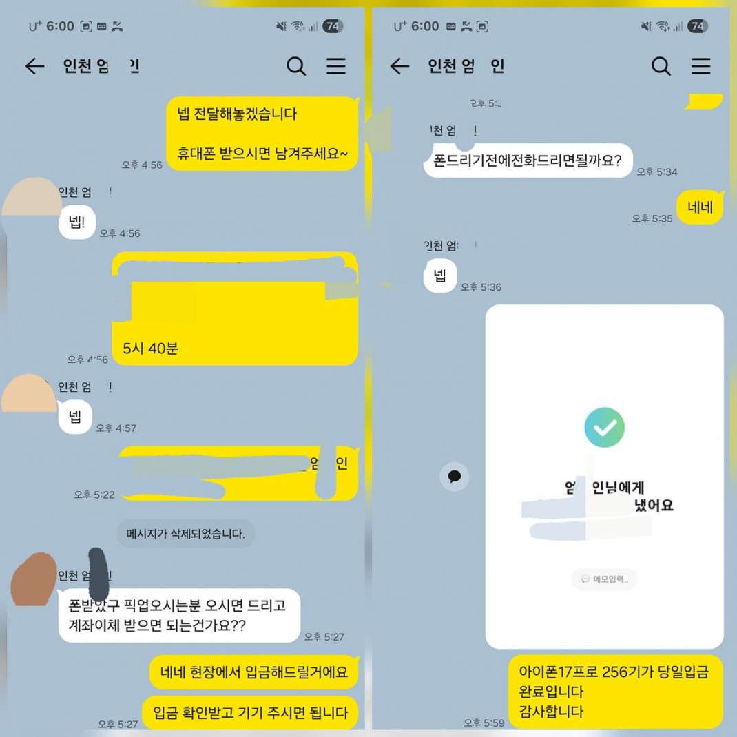 02.14 엄*인 고객님 아이폰17프로 256GB 매입완료 작성자엄*인 등록일 26-02-27 조회12회 이름엄*인 본문 비대면으로 진행해드린 고객님이십니다. 비대면 당일진행.출장매입 모두 가능하십니다. 언제든지 문의주시면 신속한 상담도와드리겠습니다 02.19 김*규 고객님 아이폰17프로맥스 256GB 매입완료 02.14 염*민 고객님 아이폰17프로맥스 1TB 매입완료 수정 삭제 목록 글쓰기