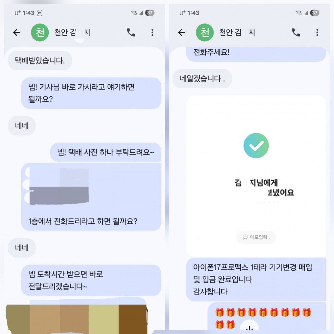 3.12 김*지 고객님 아이폰17프로맥스 1TB 매입완료 작성자김*지 등록일 26-03-17 조회4회 이름김*지 본문 비대면으로 진행해드린 고객님이십니다. 비대면 당일진행.출장매입 모두 가능하십니다. 언제든지 문의주시면 신속한 상담도와드리겠습니다 3.12 조*근 고객님 아이폰17프로맥스 256GB 매입완료 3.11 김*진 고객님 아이폰17프로맥스 256GB 매입완료 수정 삭제 목록 글쓰기