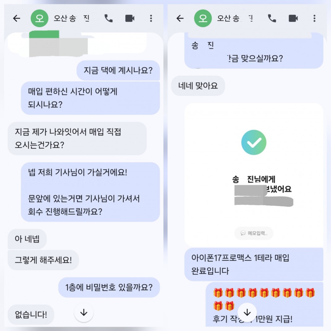 3.21 송*진 고객님 아이폰17프로맥스 1TB 매입완료 작성자송*진 등록일 26-03-23 조회15회 이름송*진 본문 비대면으로 진행해드린 고객님이십니다. 비대면 당일진행.출장매입 모두 가능하십니다. 언제든지 문의주시면 신속한 상담도와드리겠습니다 3.21 부*정 고객님 아이폰17프로맥스 512GB 매입완료 3.21 장*수 고객님 아이폰17프로맥스 256GB 매입완료 수정 삭제 목록 글쓰기