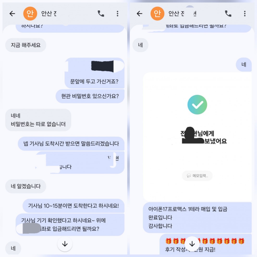 4.06 전*현 고객님 아이폰17프로1테라 매입완료 작성자전*현 등록일 26-04-09 조회8회 이름전*현 본문 비대면으로 진행해드린 고객님이십니다. 비대면 당일진행.출장매입 모두 가능하십니다. 언제든지 문의주시면 신속한 상담도와드리겠습니다 4.07 정*환 고객님 아이폰17프로맥스 512GB 매입완료 4.04 김*현 고객님 아이폰17프로 256기가 매입완료 수정 삭제 목록 글쓰기