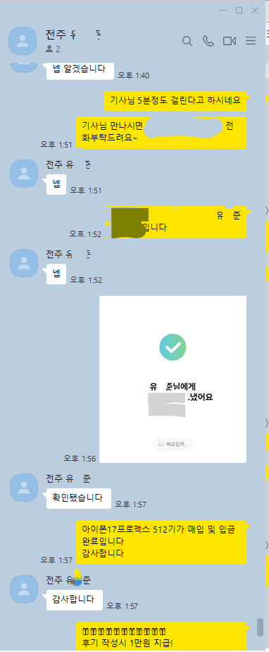 4.16 유*준 고객님 아이폰17프로맥스 512GB 매입완료 작성자유*준 등록일 26-04-20 조회5회 이름유*준 본문 비대면으로 진행해드린 고객님이십니다. 비대면 당일진행.출장매입 모두 가능하십니다. 언제든지 문의주시면 신속한 상담도와드리겠습니다 4.17 모*진 고객님 아이폰17프로맥스 256GB 매입완료 4.15 신*진 고객님 아이폰17프로맥스 256GB 매입완료 수정 삭제 목록 글쓰기