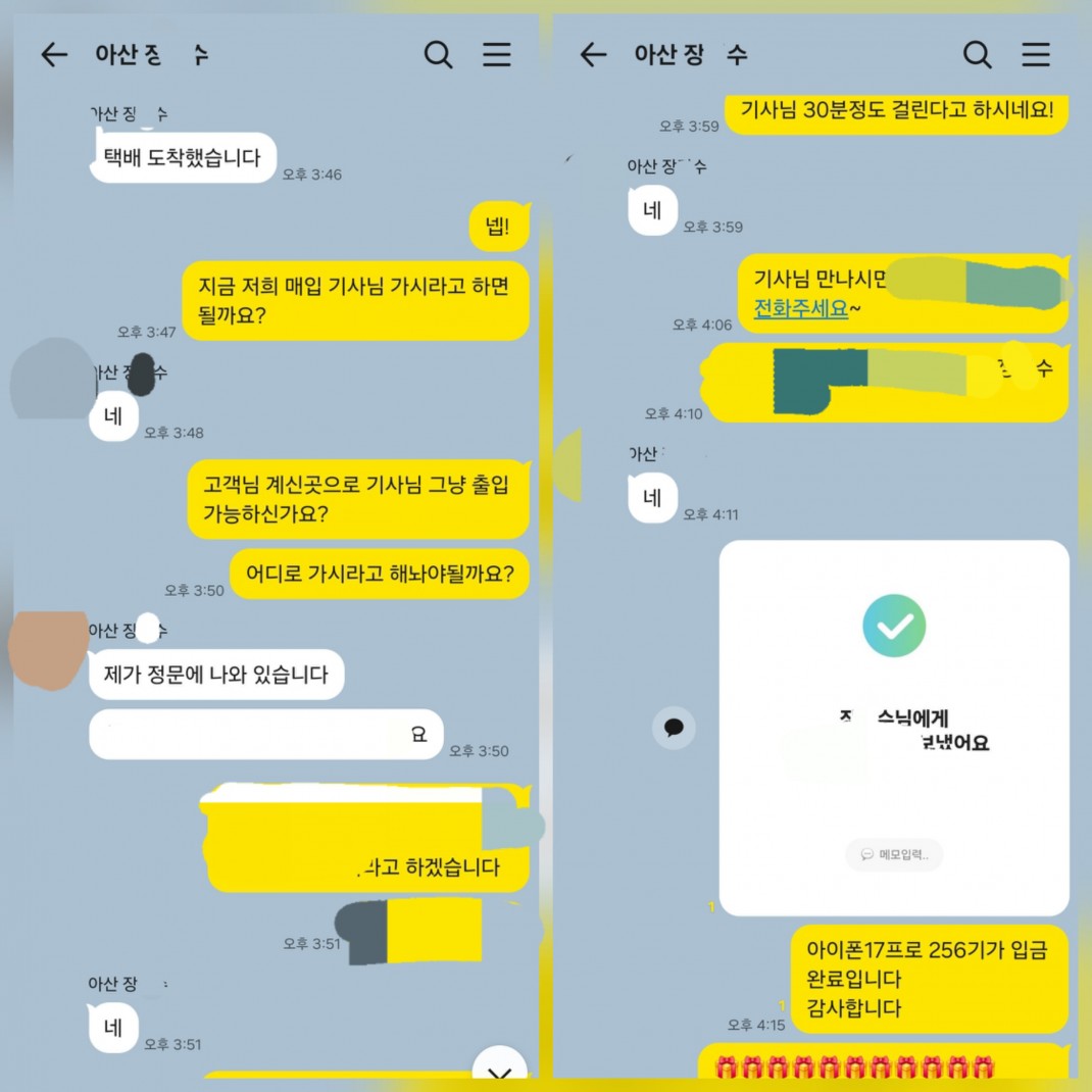 4.21 장*수 고객님 아이폰17프로 256GB 매입완료 작성자장*수 등록일 26-04-24 조회11회 이름장*수 본문 비대면으로 진행해드린 고객님이십니다. 비대면 당일진행.출장매입 모두 가능하십니다. 언제든지 문의주시면 신속한 상담도와드리겠습니다 4.21 전*규 고객님 아이폰17프로 256GB 매입완료 4.21 김*빈 고객님 아이폰17프로 1TB 매입완료 수정 삭제 목록 글쓰기