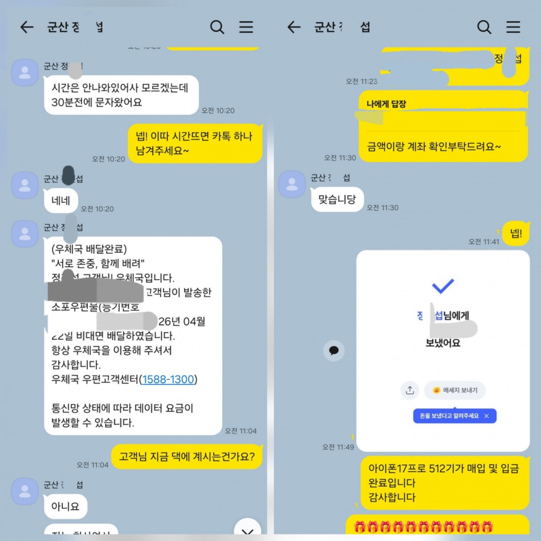 4.22 정*섭 고객님 아이폰17프로 512GB 매입완료 작성자정*섭 등록일 26-04-24 조회13회 이름정*섭 본문 비대면으로 진행해드린 고객님이십니다. 비대면 당일진행.출장매입 모두 가능하십니다. 언제든지 문의주시면 신속한 상담도와드리겠습니다 4.22 이*희 고객님 아이폰17프로 256GB 매입완료 수정 삭제 목록 글쓰기