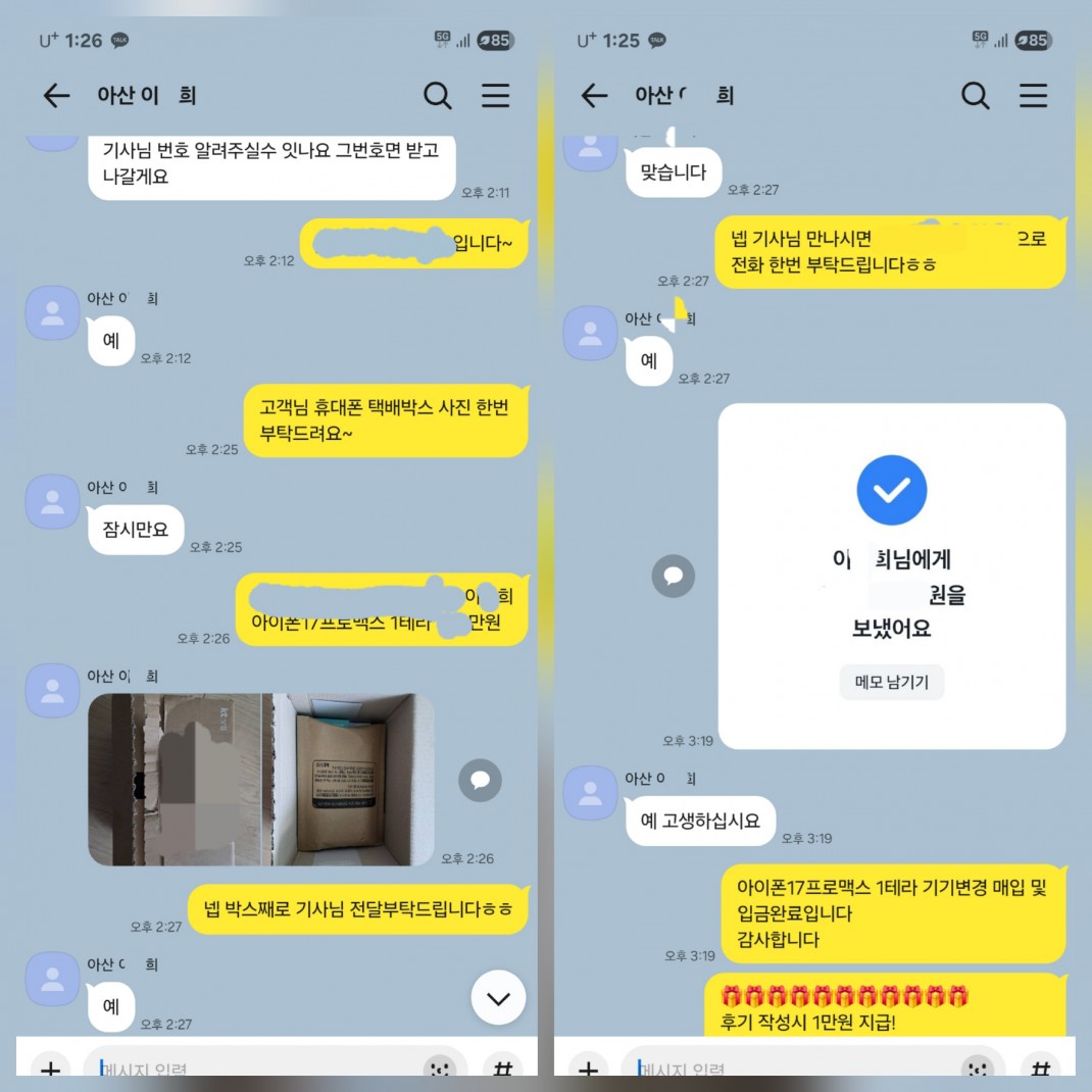 10.28 이*희 고객님 아이폰 17프로맥스 1TB매입완료 작성자이*희 등록일 25-10-30 조회29회 이름이*희 본문 비대면으로 진행해드린고객님이십니다. 고객님께서 매입 원하시는 시간에 최대한 맞춰서 매입진행도와드리겠습니다. 언제든지 문의주시면 신속한 상담도와드리겠습니다! 10.30 김*정 고객님 S25울트라 256GB 매입완료 10.29 심*비 고객님 아이폰17프로256GB 매입완료 수정 삭제 목록 글쓰기
