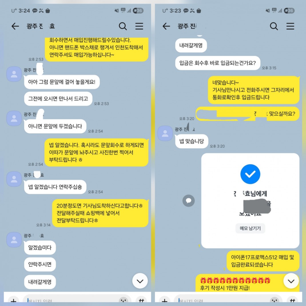 12.20 진*효 고객님 아이폰17프로맥스512GB 매입완료 작성자진*효 등록일 25-12-25 조회41회 이름진*효 본문 비대면으로 진행해드린고객님이십니다. 비대면 당일진행.출장매입 모두 가능하십니다. 언제든지 문의주시면 신속한 상담도와드리겠습니다 12.23 김*문 고객님 신규개통 매입완료 12.19 권*용 고객님 신규개통 매입완료 수정 삭제 목록 글쓰기